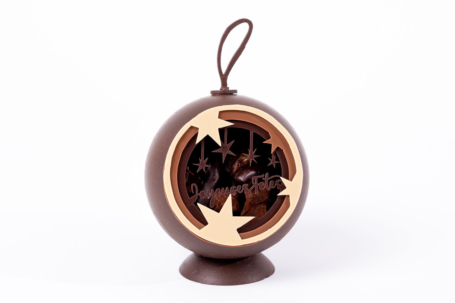 Boule de Noël en chocolat garnie